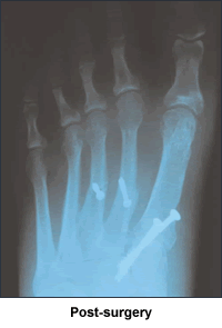 I was born with bunions. When I was 12 years old, my mother took me to a podiatrist for help. He said I was too young, and come back when I'd finished growing. So when I was 23 and had my own health coverage, I went to an orthopedic surgeon by myself. Now I didn't just have 2 little bunions. My toes were all crooked. My big toes went out at sharp 45 degree angles before coming back in. The doctor agreed both feet needed surgery, one just for cosmetic reasons if nothing else. So he sawed off the bunions and lengthened the ligaments between the big and 1st toes on both feet. On my left foot, he also broke the big toe and tried to turn the bone back in at a more appropriate angle. After much pain and recuperation, I decided my feet were "fixed".