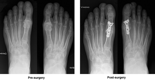 My mother-in-law has bunions and I thought I had the same thing. She ordered us both a product that you put on your feet overnight to "cure" our feet. Well, I tried them and ended up ripping them off in the middle of the night. My feet became a constant source of discomfort, especially by the end of the day. I finally decided to see a local podiatrist hoping he would recommend a cortisone shot and everything would be fine. A couple of x-rays were done in his office. He told me my problem was more serious and I needed joint replacement right away. I never heard of such a thing. That was when I decided I needed to see Dr. Leavitt. I knew of Dr. Leavitt thru the doctor that I had worked for. Her brother-in-law had a crush injury of his foot and because of Dr. Leavitt, he was able to walk again.