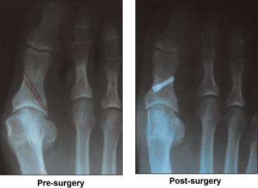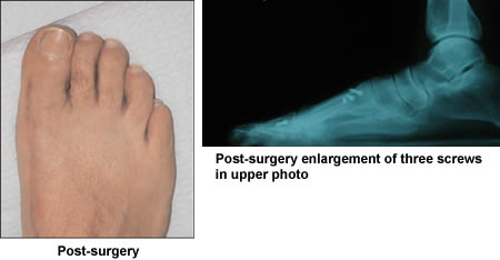 By summer, 2003, I noticed a "bump" on the side of my right foot; my big toe was starting to cross under the second toe. I went to an orthopedic surgeon who told me that he couldn't remove the bunion. The only procedure he could do, as a last resort, involved removing the joints, but I would no longer be able to work. He referred me to a local podiatrist who gave me a cream to rub on and inserted pads between the toes to separate them. She gave me instructions to come back in five weeks for the pads to be replaced. No one knew how to help or knew of anyone who could. The pain continued to get worse even through the nights.