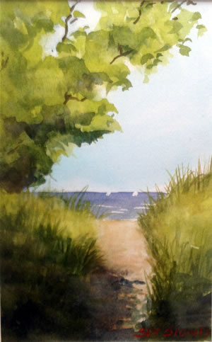 Please accept this watercolor that I painted in gratitude for these past few months of care. It is a painting of the path we take to the beach. It's about a mile from our house.